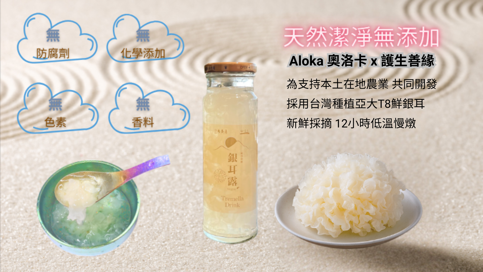 使用100%台灣本產銀耳-亞洲大學研發 T8 菌種,無漂白、無膠、無香料、無防腐劑